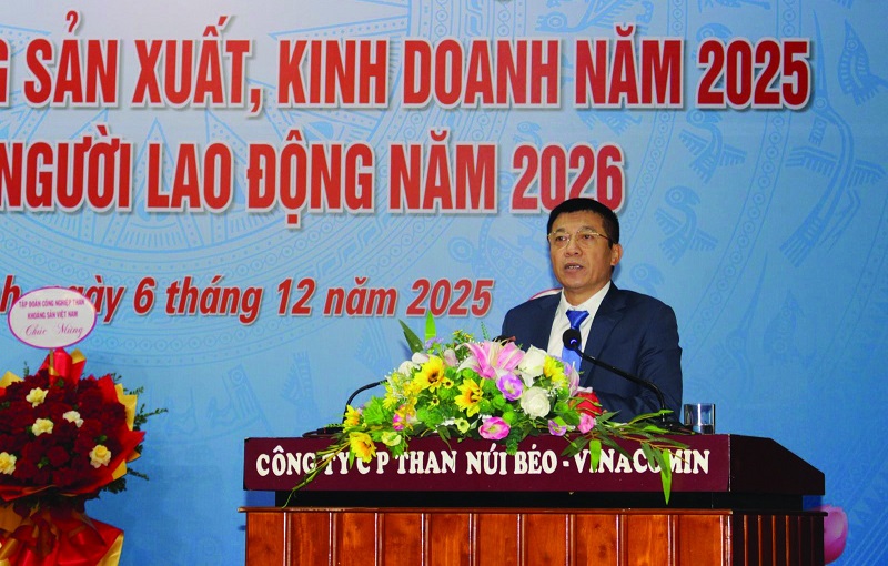 Chúc mừng những kết quả, thành tích đạt được của Than Núi Béo, thay mặt lãnh đạo Tập đoàn, Tổng giám đốc Vũ Anh Tuấn đã ghi nhận, biểu dương sự cố gắng, nỗ lực, đoàn kết, lao động sáng tạo của tập thể Ban lãnh đạo, CB, CN, NLĐ Công ty đã hoàn thành vượt kế hoạch, đạt công suất thiết kế 2 triệu tấn than/năm – đây là mỏ đầu tiên chuyển đổi thành công từ sản xuất lộ thiên sang hầm lò và đạt công suất thiết kế. Nhiệm vụ năm 2026, Tổng giám đốc Tập đoàn Vũ Anh Tuấn chỉ đạo, Công ty tiếp tục đẩy mạnh ứng dụng KHCN, cơ giới hóa, tự động hóa và chuyển đổi số vào các lĩnh vực hoạt động; tiếp tục tái cơ cấu, sắp xếp tổ chức, tinh giản lao động, nâng cao năng suất lao động và hiệu quả SXKD, cải thiện điều kiện làm việc, nhà ở cho người lao động; triển khai sâu rộng, toàn diện Nghị quyết Đại hội Đảng các cấp, khẳng định vai trò lãnh đạo trực tiếp, toàn diện của cấp ủy Đảng, tăng cường công tác xây dựng Đảng, hệ thống chính trị vững mạnh; xây dựng đội ngũ cán bộ, CNLĐ đáp ứng yêu cầu nhiệm vụ; tiếp tục thực hiện tốt công tác AT-VSLĐ, công tác môi trường; chú trọng xây dựng mối quan hệ tốt với địa phương, thực hiện công tác an sinh xã hội trên địa bàn. Tuân thủ nghiêm các quy định của pháp luật, chủ trương, chính sách của Đảng, Nhà nước; phát huy sức mạnh truyền thống “Kỷ luật và Đồng tâm” của thợ mỏ, sức mạnh của tập thể, hoàn thành toàn diện nhiệm vụ năm 2026, thực hiện mục tiêu vì người lao động, vì sự phát triển của Than Núi Béo.