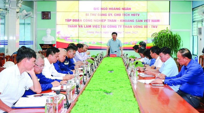 Chủ tịch HĐTV Tập đoàn Ngô Hoàng Ngân và đoàn công tác đã kiểm tra tiến độ Dự án đầu tư, xây dựng cải tạo, nâng cấp các công trình mặt bằng sân công nghiệp mức +30 mỏ Tràng Bạch. Đồng thời, làm việc với Công ty Than Uông Bí – TKV về tình hình sản xuất, kinh doanh, công tác đầu tư các dự án phục vụ sản xuất, nhà ở, điều kiện sinh hoạt cho người lao động.