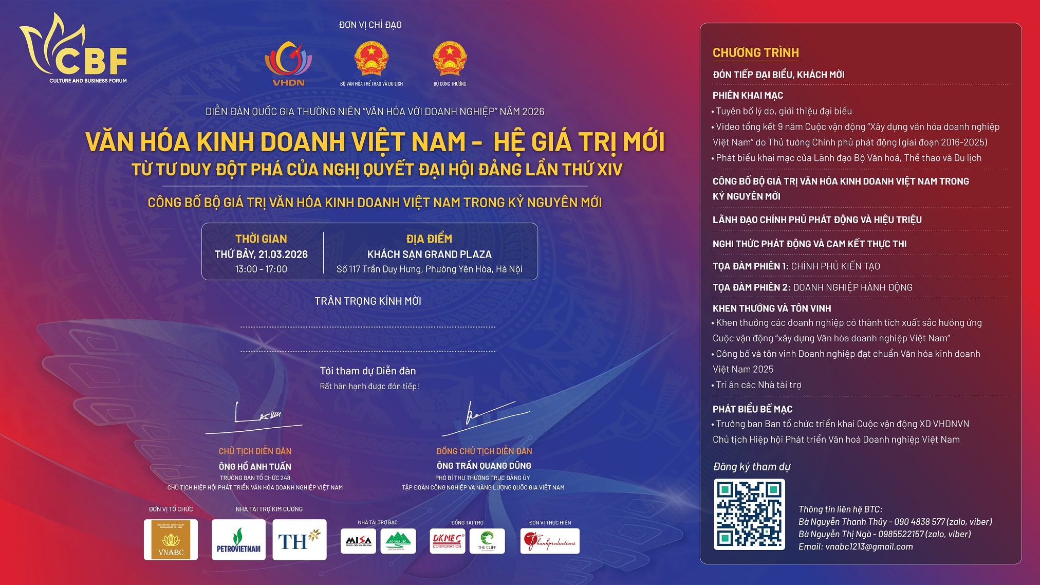 DIỄN ĐÀN QUỐC GIA THƯỜNG NIÊN “VĂN HÓA VỚI DOANH NGHIỆP” NĂM 2026 VĂN HÓA KINH DOANH VIỆT NAM – HỆ GIÁ TRỊ MỚI TỪ TƯ DUY ĐỘT PHÁ CỦA NGHỊ QUYẾT ĐẠI HỘI ĐẢNG LẦN THỨ XIV