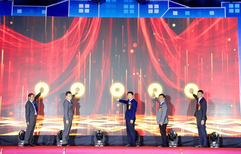 Các đại biểu thực hiện nghi thức khai mạc hội chợ