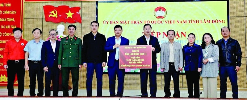 Thực hiện nhiệm vụ do Bộ Chính trị giao, vừa qua, Tỉnh ủy Quảng Ninh đã cử Đoàn công tác do đồng chí Nghiêm Xuân Cường, Phó Chủ tịch HĐND tỉnh làm trưởng đoàn trực tiếp có mặt tại Lâm Đồng, mang theo tình cảm và trách nhiệm của Đảng bộ, chính quyền và Nhân dân Quảng Ninh đến với Nhân dân vùng lũ. Đoàn đã trao 50 tỷ đồng từ ngân sách tỉnh hỗ trợ đợt 1 để giúp địa phương khắc phục thiệt hại do bão lũ gây ra.