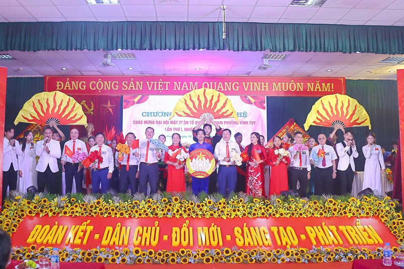 Trong hai ngày 23 và 24/9/2025, UBMTTQ Việt Nam phường Vĩnh Tuy, thành phố Hà Nội đã long trọng tổ chức Đại hội lần thứ nhất, nhiệm kỳ 2025 – 2030. Với tinh thần “Đoàn kết – Dân chủ – Đổi mới – Sáng tạo – Phát triển”, Đại hội lần nữa khẳng định vai trò nòng cốt của MTTQ trong việc xây dựng khối đại đoàn kết toàn dân, phát huy dân chủ ở cơ sở, thực hiện hiệu quả các phong trào thi đua yêu nước, đặc biệt là các cuộc vận động lớn như “Toàn dân đoàn kết xây dựng nông thôn mới, đô thị văn minh”, phong trào thi đua “Vì người nghèo – Không để ai bị bỏ lại phía sau”,… góp phần xây dựng phường Vĩnh Tuy văn minh – hiện đại – phát triển bền vững.